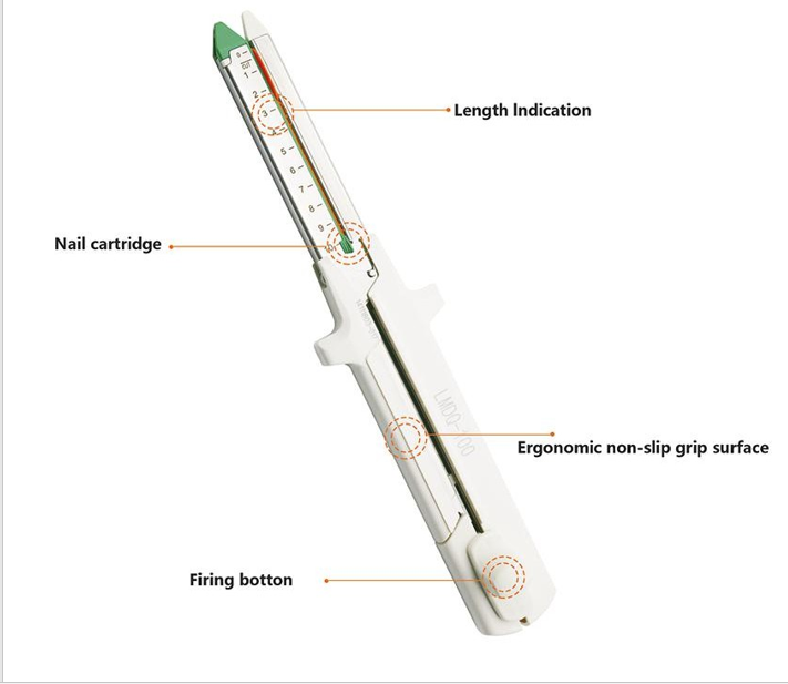 Indications: Transection, resection, anastomosis in GI surgeries.